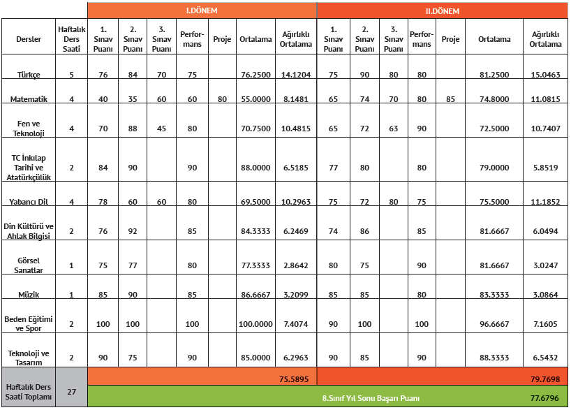 2013 - 2014 eğitim - öğretim yılından başlayarak altı temel ders için 8. sınıfta öğretmen tarafından dönemsel olarak yapılan sınavlardan bir tanesi ortak olarak gerçekleştirilecek.